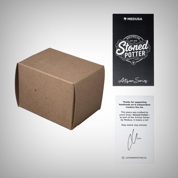 Handmade in Brooklyn by artist John Velez, the Stoned Potter Classic Spoon brings together everyday functionality and artisanal charm. Each 5-inch piece is molded, glazed, and fired in his home studio, then finished with earthy tones and subtle variations that make every pipe unique. The design feels comfortable and balanced in hand, while its large bowl provides smooth, consistent draws. With its boho-chic aesthetic and durable ceramic body, this spoon fits as easily on a coffee table as it does in your daily ritual.
