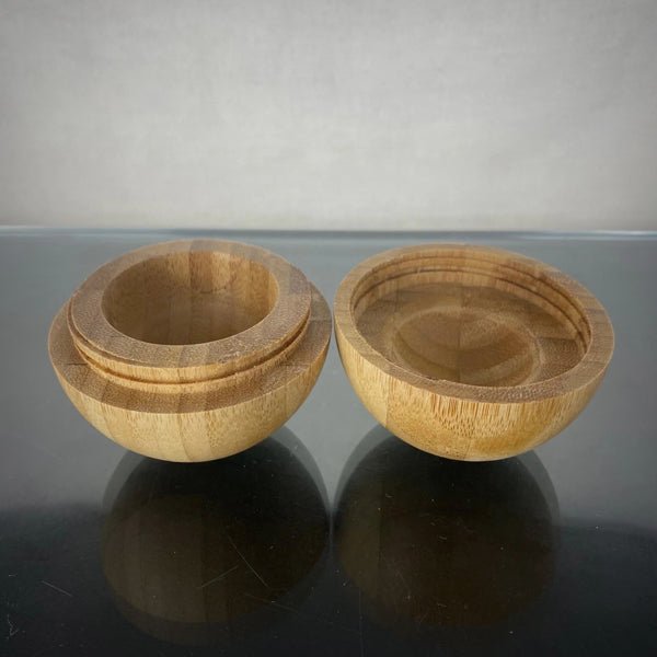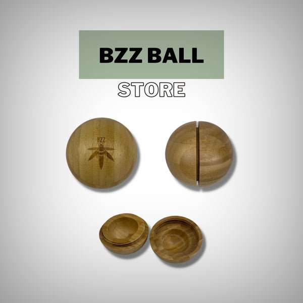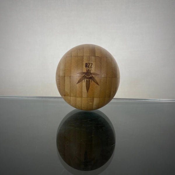 The Bzz Ball is a screw-top bamboo sphere with a hidden compartment inside. Pass it to a friend with a nug inside — that’s the vibe. It’s 65mm wide and fits perfectly in any Bzz Box.