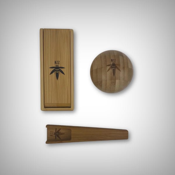 Bzz Bamboo Accessory Bundle – 3-Piece Herb Storage & Rolling Set