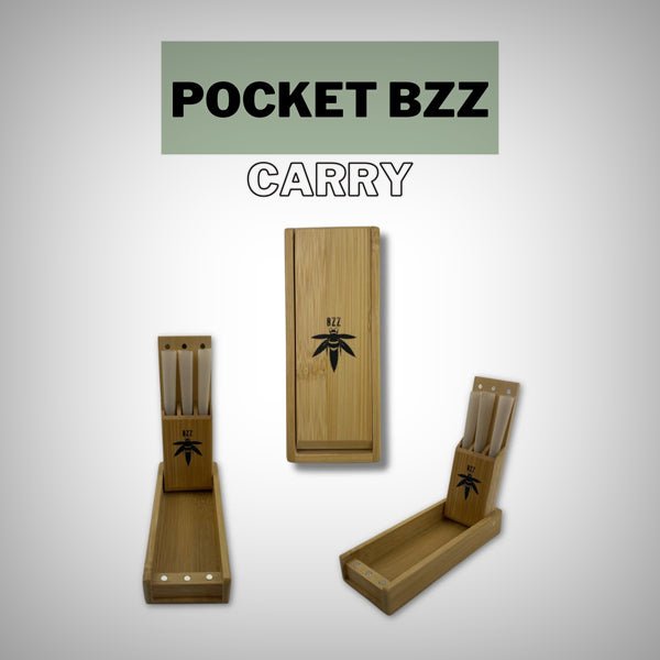The Pocket Bzz is your go-to travel piece. It fits three pre-rolls, stays shut with magnetic closure, and slips easily into your pocket, bag, or glovebox. Simple, clean, and ready to roll when you are.