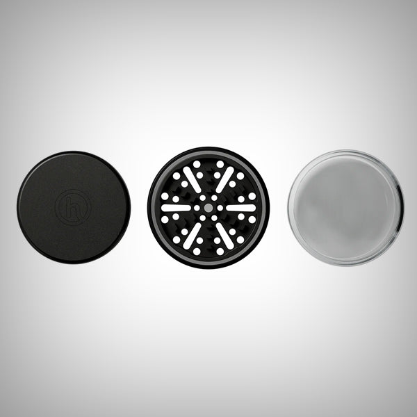 The clear glass base lets you see your material without opening the grinder, which makes it convenient when you are working quickly. The silicone grip around the top adds stability and comfort, giving you better control as you twist. Each component is precision machined for smooth operation, helping reduce the effort it takes to get an even grind.