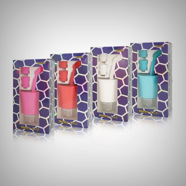 The Waxmaid HoneyCup E-Rig blends smart design with flavorful, efficient vapor in a compact 6.9-inch form. Built for wax users who want power and portability, it uses a spiral air intake that spins airflow through quartz balls for complete vaporization and thick, milky clouds.
